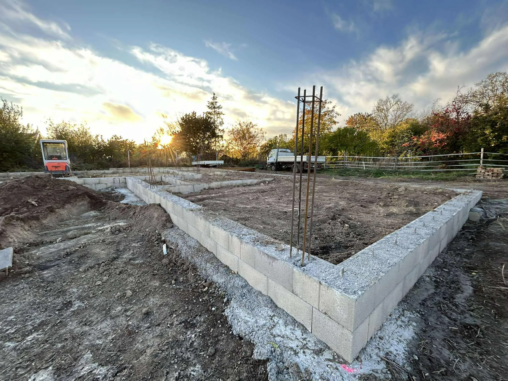 Ez a fő kivitelezési szakasz: az alapozástól a falazáson és födémeken át a teljes tetőszerkezet felépítéséig eljutunk a szerkezetkész állapotig.